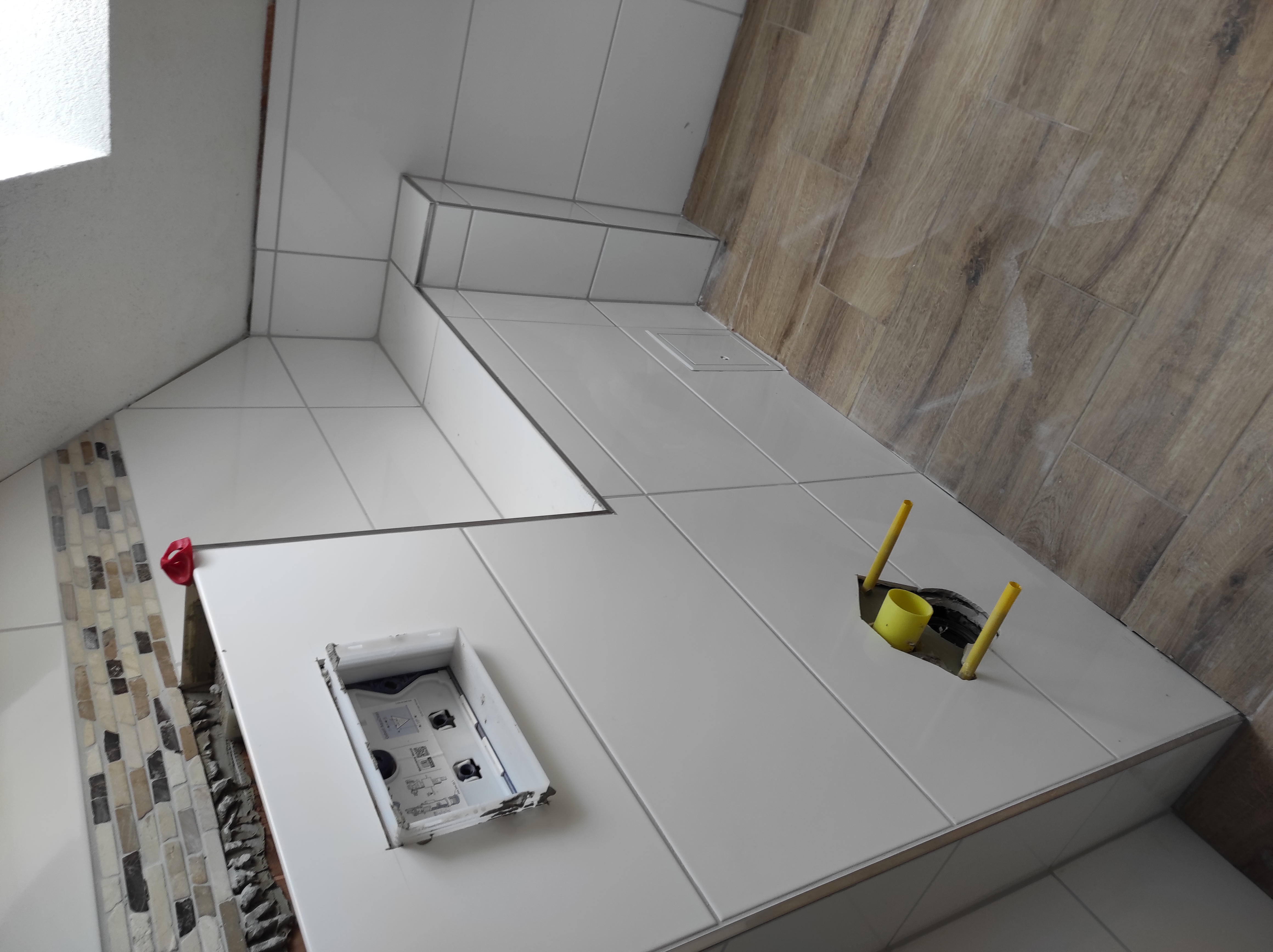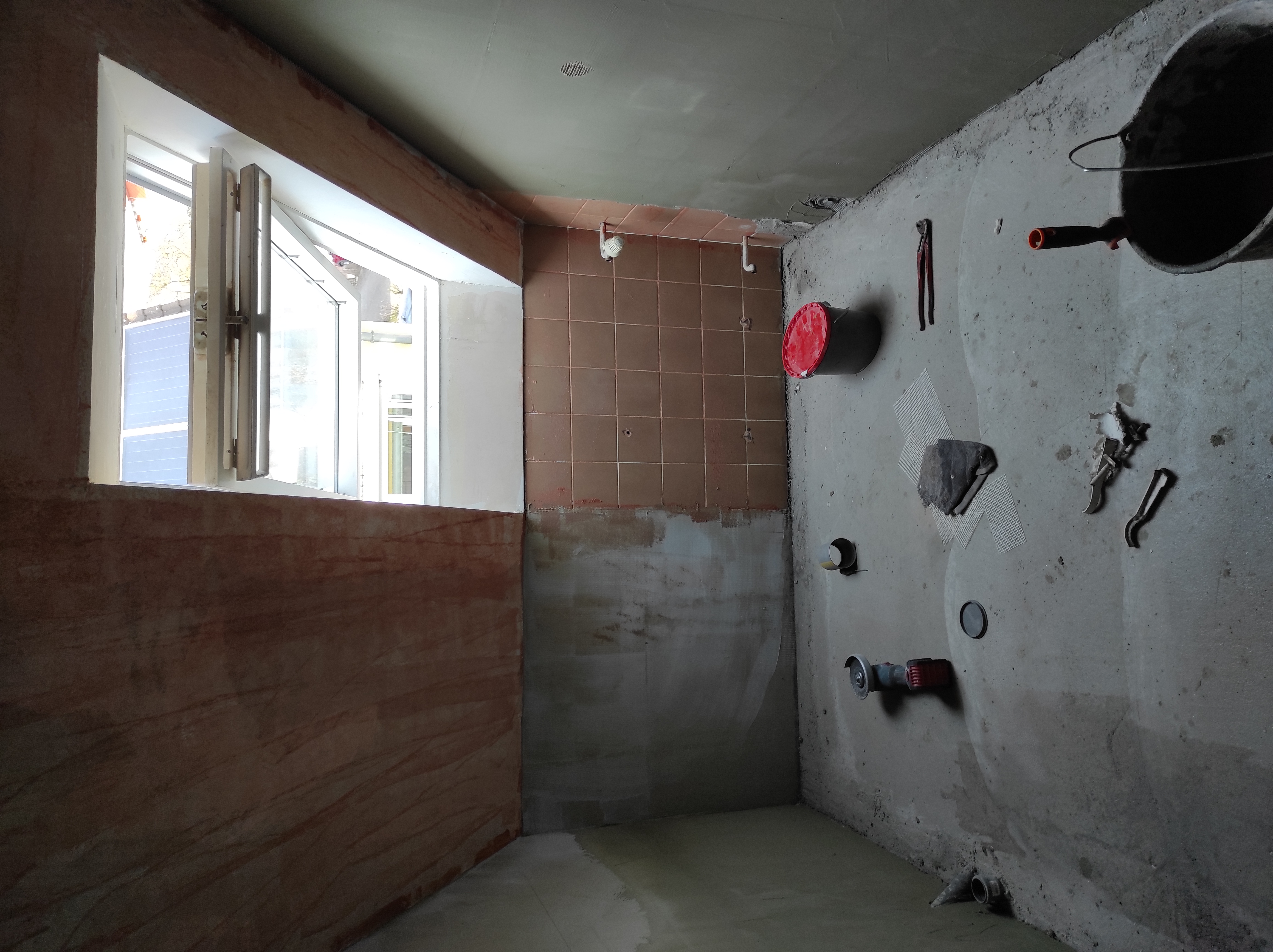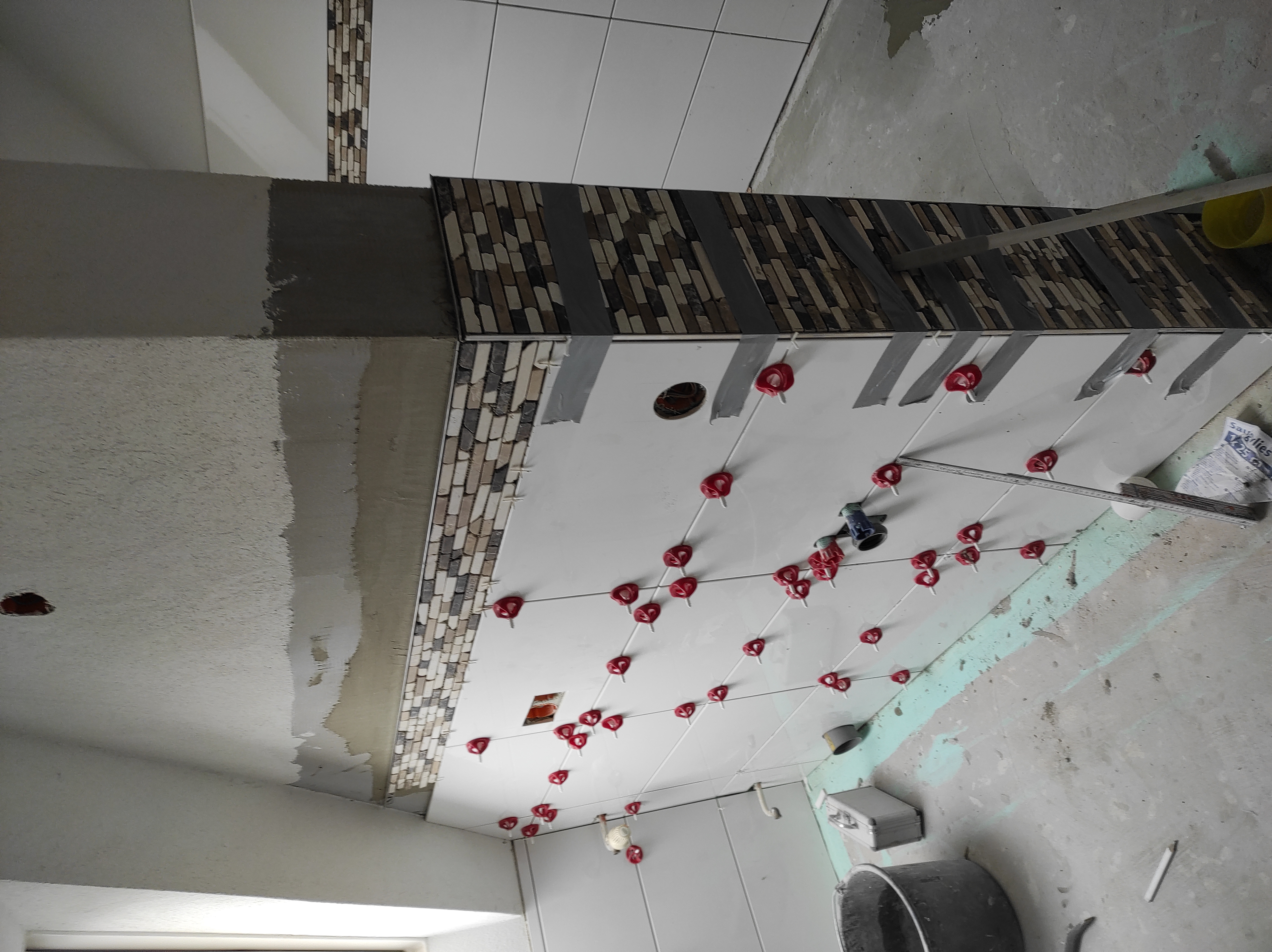 Nappalik, folyosók járólapozása.